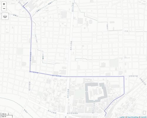 # 必要なライブラリのロード library(tidyverse) library(sf) library(mapview) library(stplanr) library(OpenStreetMap) # 2地点間のポイントデータ作成 sfd = tribble(~lat,~lon,~location, 36.075411, 136.212213,"福井大学", 36.062244, 136.223214, "…